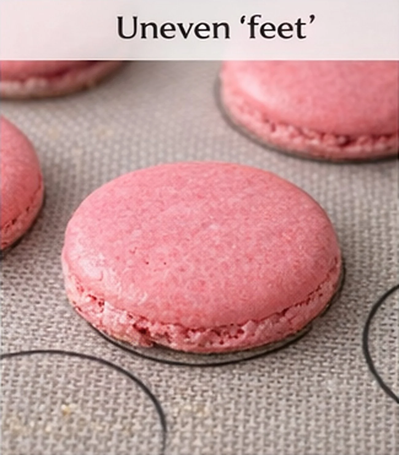 No Feet: Causes include weak meringue, low oven temperature, or overmixed batter. Fix: Increase oven temperature slightly and strengthen meringue.