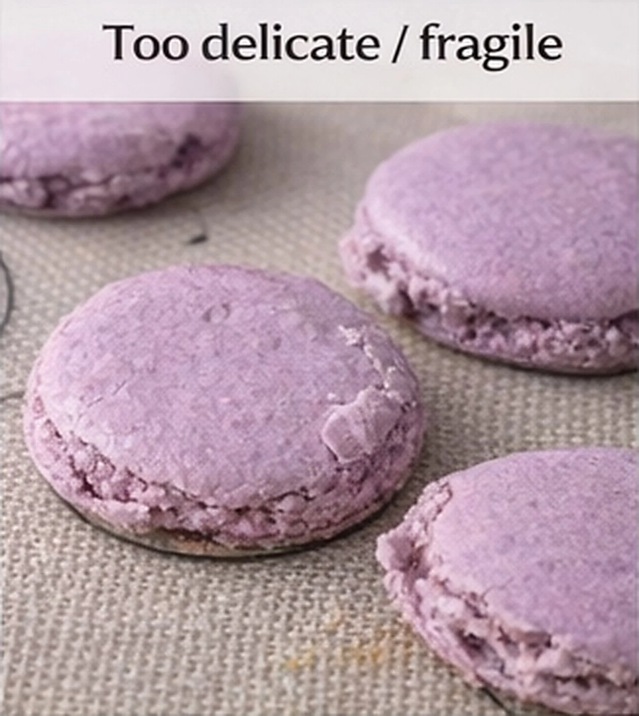 Symptoms: Dense shells (too much almond flour); fragile shells (too much sugar).